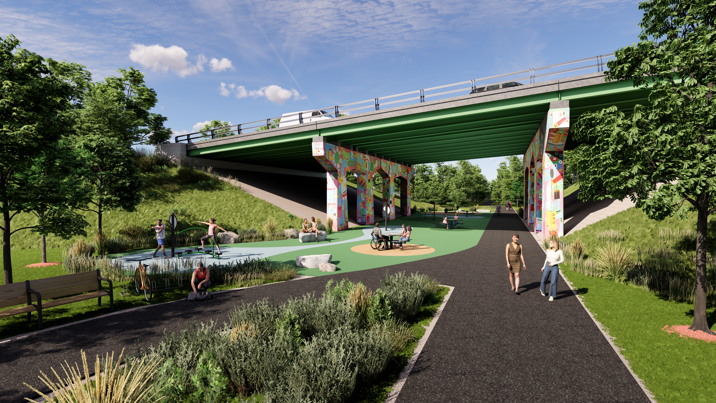 Rebalance the transportation network to include walking, bicycling, multi-use trails and other Complete Streets initiatives.