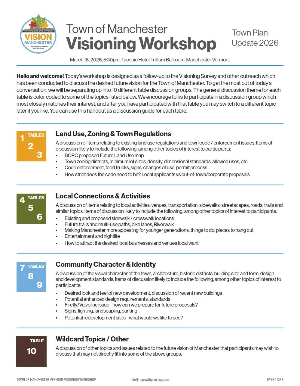 Manchester residents, business and property owners, and local employees are invited to take our Visioning Survey for the 2026 Plan update. The input collected from this survey is anonymous, and will help us to identify goals for the plan update as well as design specific topics of discussion for our upcoming workshops this spring.