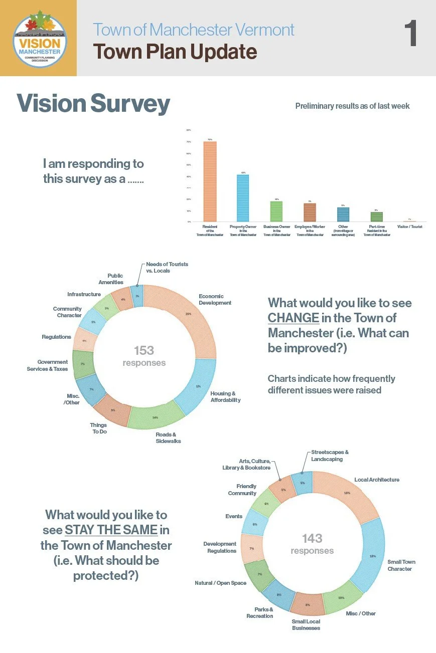 Note: Completed paper copies of the survey should be returned to Town Hall in person or via mail at: Town of Manchester, Attn: Town Plan Comment Box, Planning & Zoning Office, 40 Jeff Williams Way, Manchester Center, VT 05255